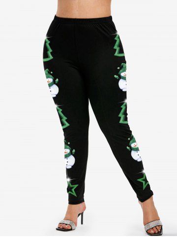 Plus Size Christmas Tree Snowman Star Glitter 3D Print Leggings - Green - 6x