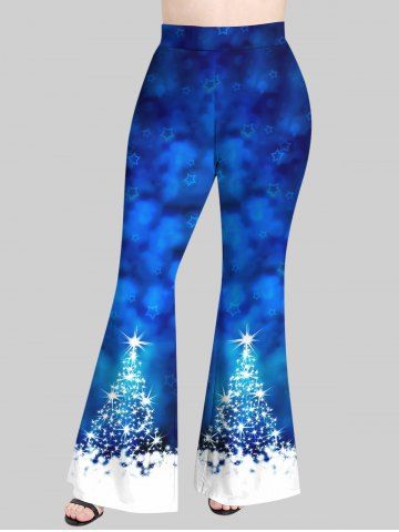 Plus Size Christmas Tree Star Colorblock Glitter 3D Print Flare Pants - Blue - M