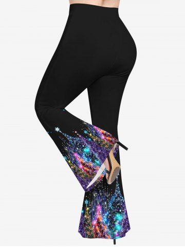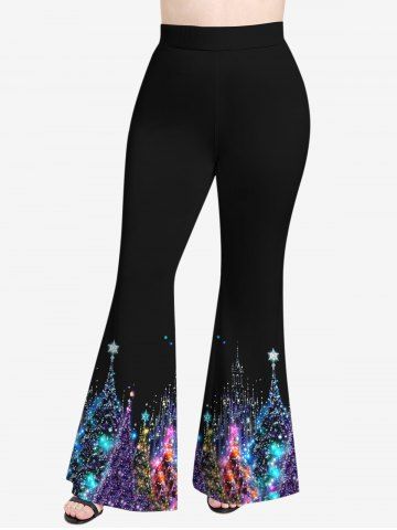 Plus Size Christmas Tree Star Sparkling Sequin Glitter 3D Print Flare Pants - Black - 5x