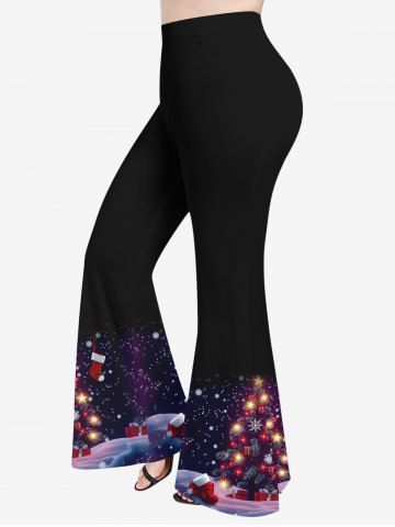 Plus Size Christmas Tree Stocking Ball Star Snowflake Print Flare Pants - Black - S