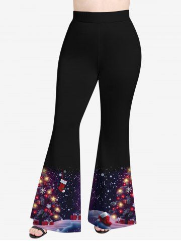 Plus Size Christmas Tree Stocking Ball Star Snowflake Print Flare Pants - Black - L