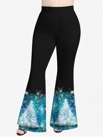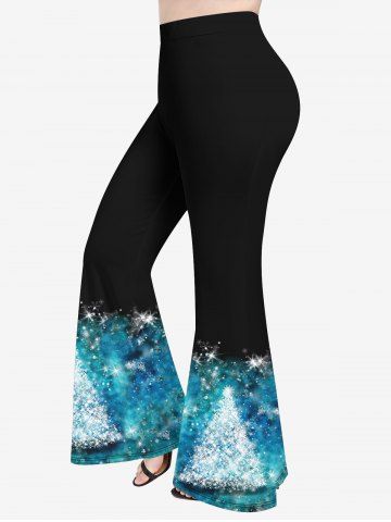 Plus Size Christmas Tree Tie Dye Glitter Print Disco Flare Pants - Blue - 3x