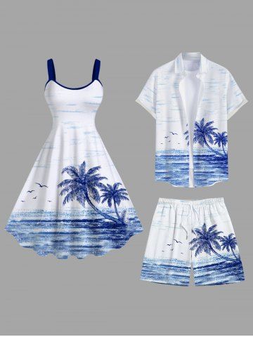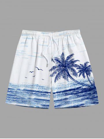 Plus Size Coconu Tree Bird Seascape Print Hawaii Beach SHorts For Men - White - 4xl