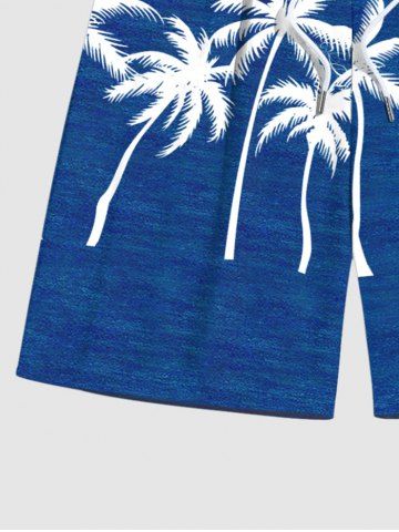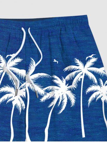 Plus Size Coconut Tree Bird Print Pocket Hawaii Beach Shorts For Men - Deep Blue - 7xl