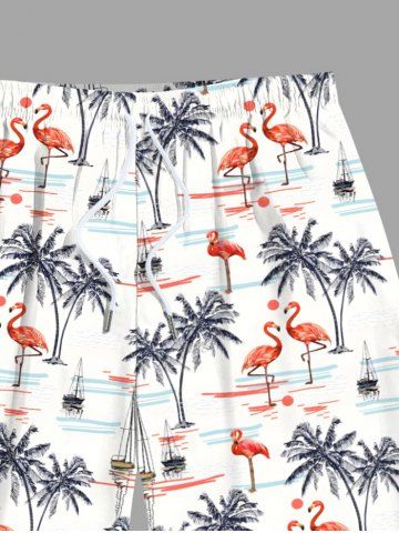 Plus Size Coconut Tree Flamingo Sailboat Sun Print Hawaii Beach Shorts For Men - White - M
