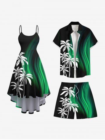 Bottoms > Plus Size Coconut Tree Light Beam Colorblock Print Hawaii Beach Shorts For Men