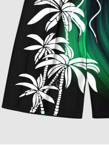 Plus Size Coconut Tree Light Beam Colorblock Print Hawaii Beach Shorts For Men - Black - 5xl
