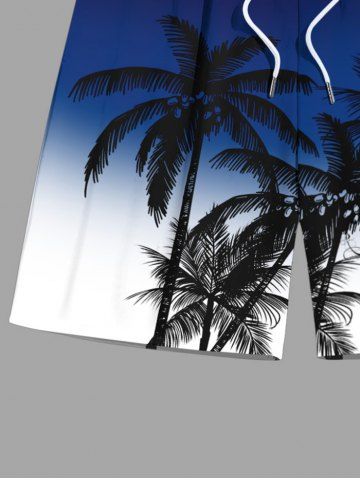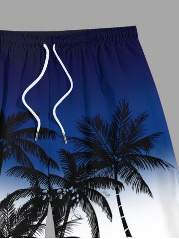 Plus Size Coconut Tree Ombre Colorblock Print Beach Shorts For Men - Blue - L