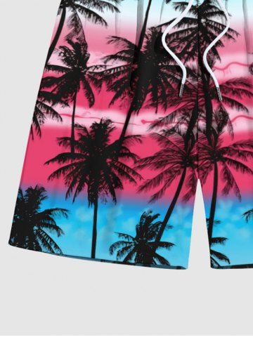 Bottoms > Plus Size Coconut Tree Ombre Colorblock Print Hawaii Beach Shorts For Men