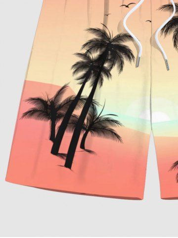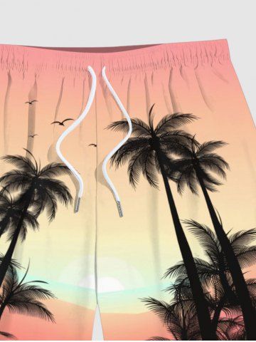 Bottoms > Plus Size Coconut Tree Ombre Print Hawaii Beach Shorts For Men