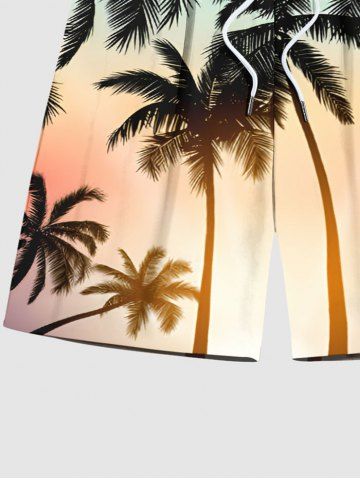 Plus Size Coconut Tree Ombre Print Hawaii Beach Shorts For Men - Orange - 2xl