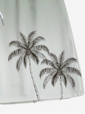 Plus Size Coconut Tree Ombre Print Hawaii Beach Shorts For Men - Light Green - Xl