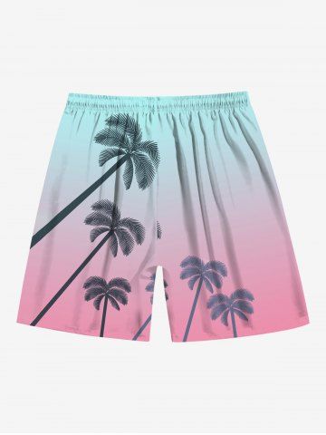 Bottoms > Plus Size Coconut Tree Ombre Print Hawaii Beach Shorts For Men
