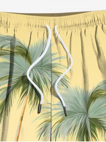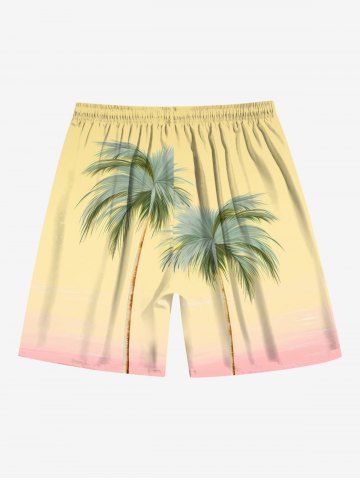 Plus Size Coconut Tree Ombre Print Hawaii Beach Shorts For Men - Yellow - 4xl