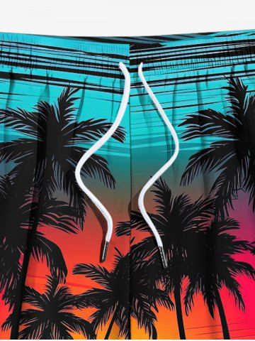 Bottoms > Plus Size Coconut Tree Ombre Sky Print Hawaii Beach Shorts For Men