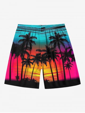 Bottoms > Plus Size Coconut Tree Ombre Sky Print Hawaii Beach Shorts For Men