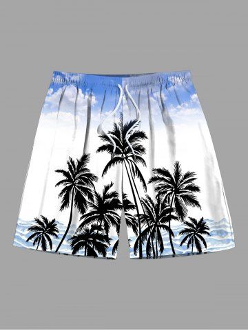 Bottoms > Plus Size Coconut Tree Ombre Sky Print Hawaii Drawstring Beach Shorts For Men