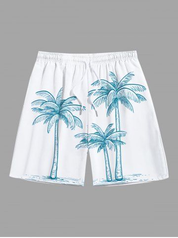Plus Size Coconut Tree Print Hawaii Beach Shorts For Men - White - 3xl