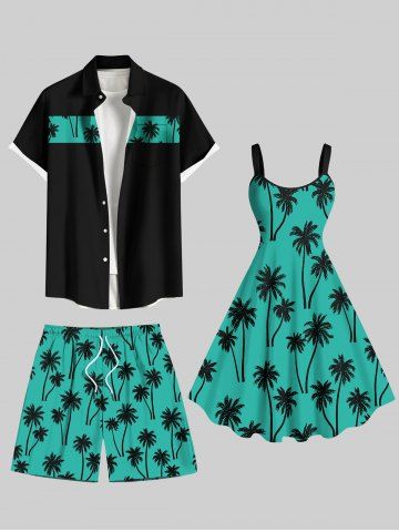 Plus Size Coconut Tree Print Hawaii Beach Shorts For Men - Green - 2xl