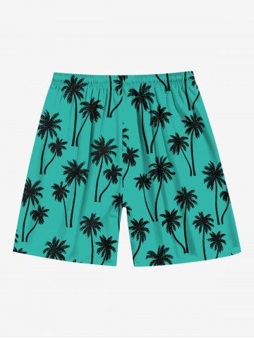 Plus Size Coconut Tree Print Hawaii Beach Shorts For Men - Green - 8xl