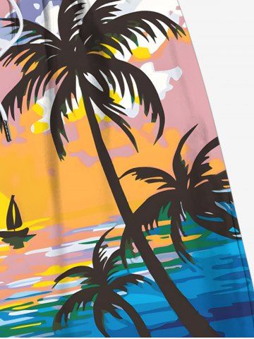 Plus Size Coconut Tree Sea Cloud Print Hawaii Drawstring Beach Shorts For Men - Multi-a - 2xl