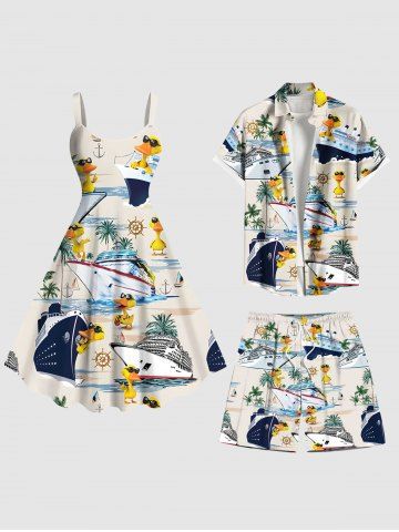Bottoms > Plus Size Coconut Tree Sea Waves Ship Ducks Print Hawaii Beach Shorts For Men