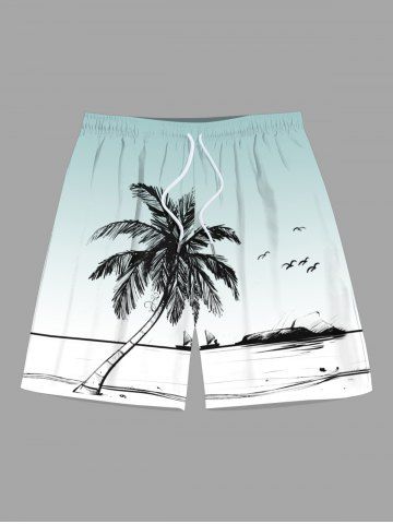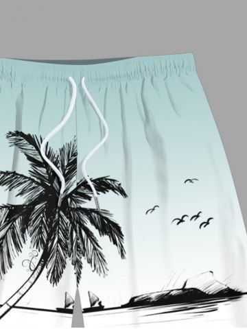 Plus Size Coconut Tree Seascape Bird Ombre Print Hawaii Beach Shorts For Men - Light Blue - 4xl