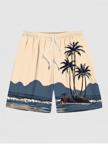 Plus Size Coconut Tree Seascape Print Hawaii Beach Shorts For Men - Light Coffee - 7xl