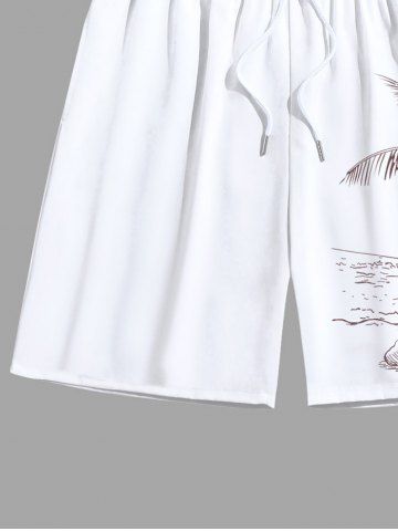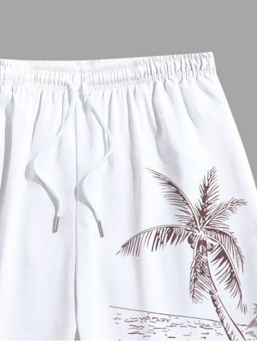 Plus Size Coconut Tree Seascape Print Hawaii Beach Shorts For Men - White - L