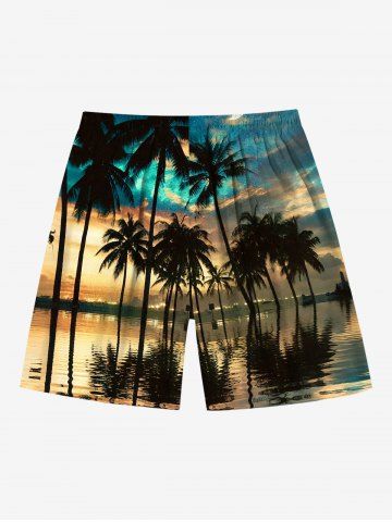 Plus Size Coconut Tree Seascape Print Hawaii Beach Shorts For Men - Yellow - 2xl