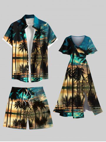 Bottoms > Plus Size Coconut Tree Seascape Print Hawaii Beach Shorts For Men