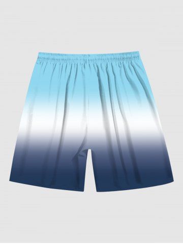 Plus Size Coconut Tree Sun Ombre Colorblock Print Hawaii Beach Shorts For Men - Sky Blue - 6xl