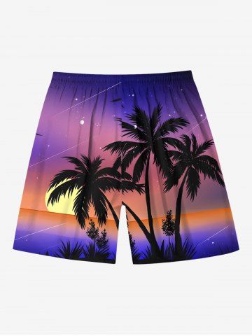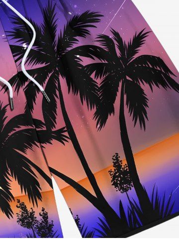 Plus Size Coconut Tree Sun Ombre Sky Print Hawaii Beach Shorts For Men - Purple - L