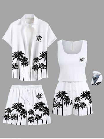 Plus Size Coconut Tree Sun Print Hawaii Beach Shorts For Men - White - 3xl