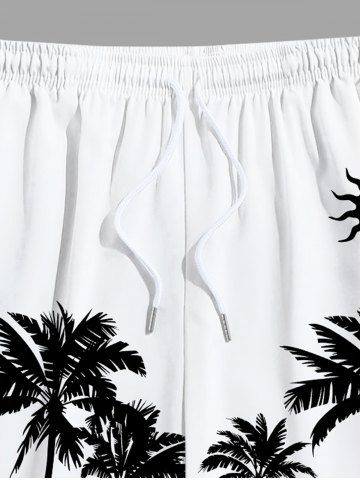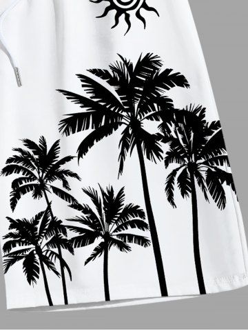 Plus Size Coconut Tree Sun Print Hawaii Beach Shorts For Men - White - 6xl