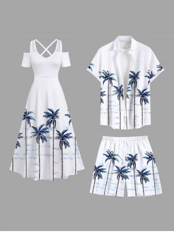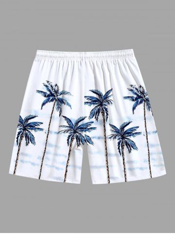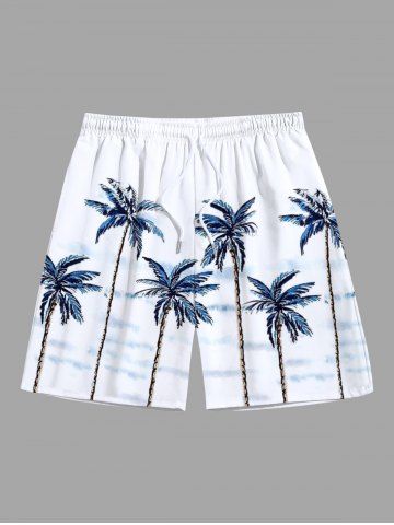 Plus Size Coconut Tree Tie Dye Cloud Print Hawaii Beach Shorts For Men - White - 3xl