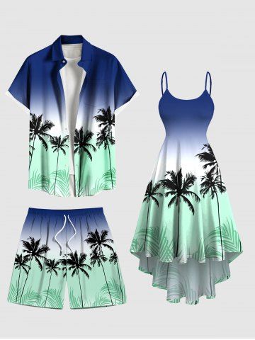 Bottoms > Plus Size Coconut Tree Tropical Leaf Ombre Colorblock Print Hawaii Beach Shorts For Men