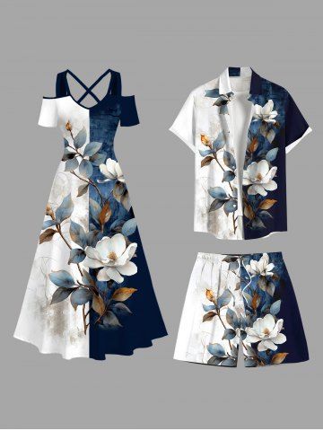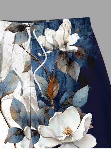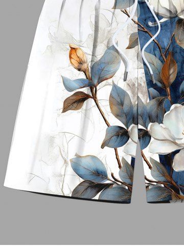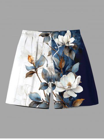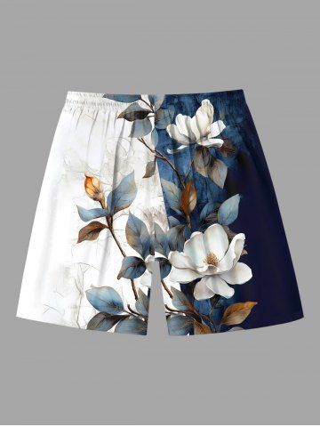 Bottoms > Plus Size Colorblock Flowers Leaf Print Hawaii Beach Shorts For Men