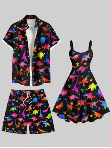 Bottoms > Plus Size Colorful Dinosaur Print Hawaii Beach Shorts For Men