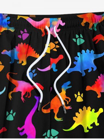 Plus Size Colorful Dinosaur Print Hawaii Beach Shorts For Men - Black - 5xl