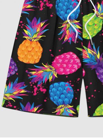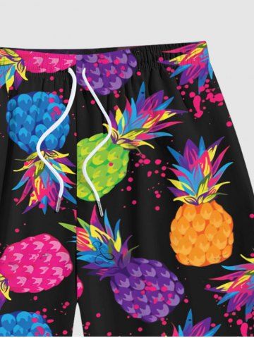 Plus Size Colorful Pineapple Paint Splatter Print Hawaii Beach Short For Men - Black - 6xl