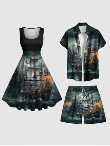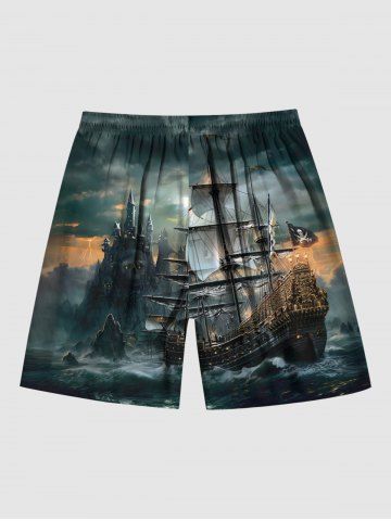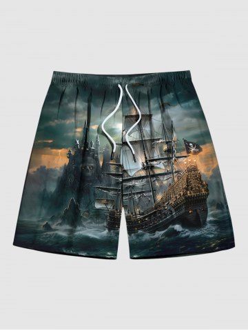 Plus Size Cruise Ship Sea Waves Print Hawaii Beach Shorts For Men - Black - L