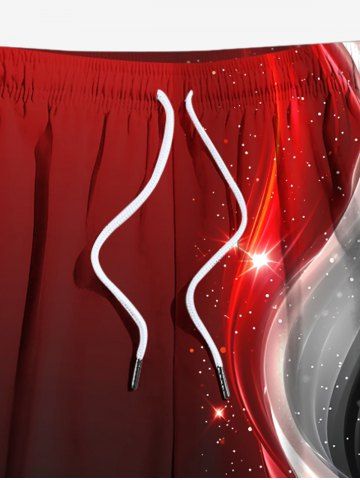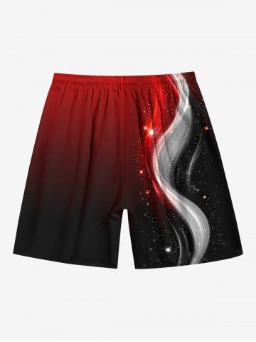 Plus Size Curves Ombre Colorblock Galaxy Glitter 3D Print Hawaii Beach Shorts For Men - Red - 3xl
