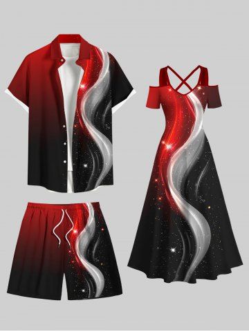 Plus Size Curves Ombre Colorblock Galaxy Glitter 3D Print Hawaii Beach Shorts For Men - Red - 6xl