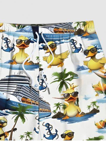 Plus Size Ducks Coconut Tree Anchor Cruise Ship Print Hawaii Beach Shorts For Men - White - 5xl