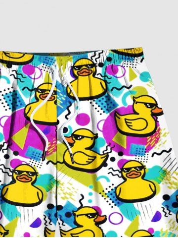 Plus Size Ducks Geometric Patterns Print Hawaii Beach Shorts For Men - Yellow - 6xl