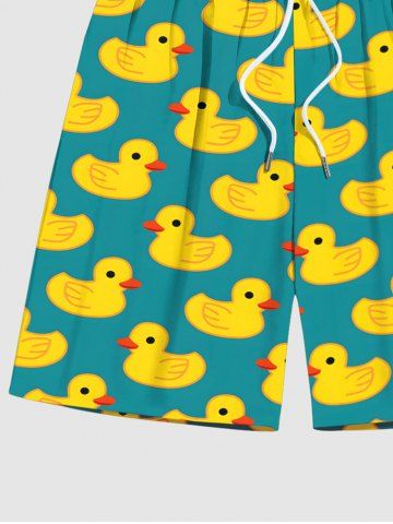 Bottoms > Plus Size Ducks Print Hawaii Beach Shorts For Men