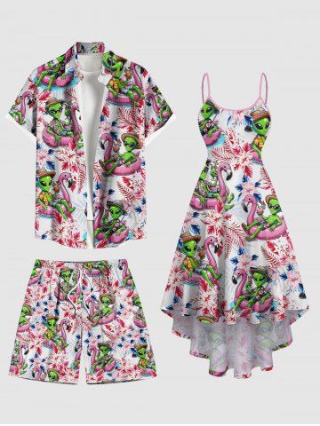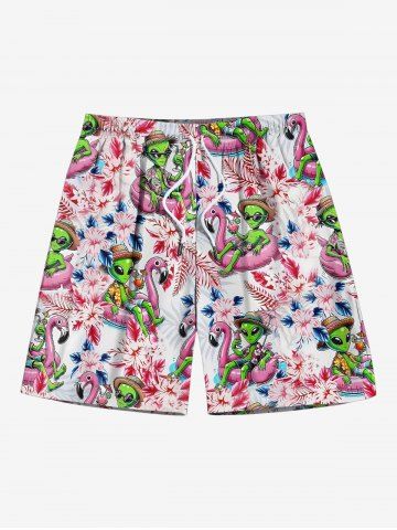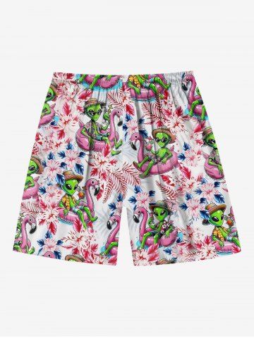 Bottoms > Plus Size Flamingo Swimming Lap Alien Hibiscus Flower Print Hawaii Beach Shorts For Men