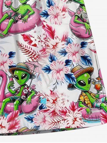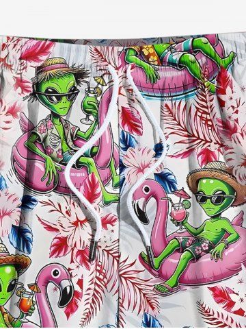 Plus Size Flamingo Swimming Lap Alien Hibiscus Flower Print Hawaii Beach Shorts For Men - Light Pink - 2xl