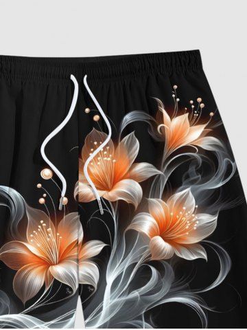 Plus Size Flowers Glitter 3D Print Hawaii Beach Shorts For Men - Black - 6xl